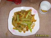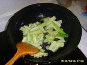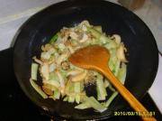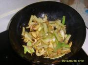 放入黄瓜片,翻炒,加入盐,鸡精,少量白酒。