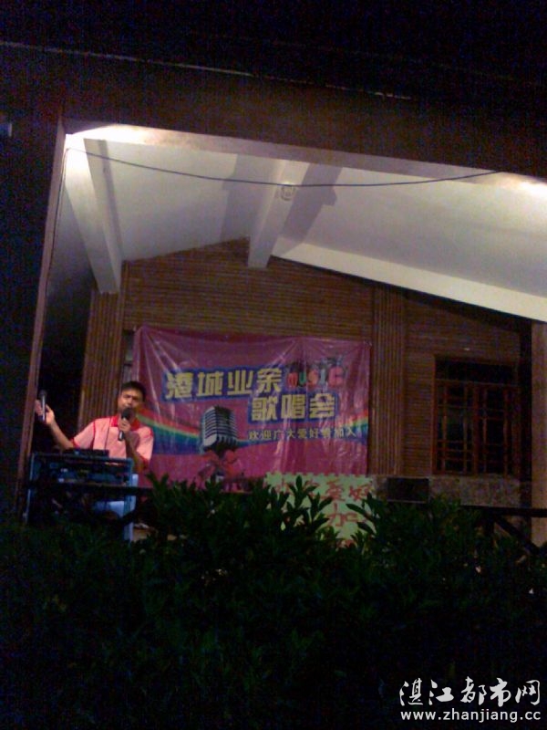 有一天晚上,去渔港公园吹海风。在堤上忽隐忽现听到一阵阵的歌声,以为是在搞晚会。寻着歌声找去,发现了一群业余歌手,确实是晚会——港城业余歌唱会。听了他们唱好几首歌,都是经典的老歌,唱得很不错。周围有好多观众,时不时给他们热烈的掌声。