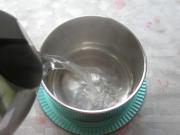 将制作米酒的容器和容器盖清洗干净,尤其是容器内不能沾有任何油性物质。用刚刚烧开的沸水冲烫容器机容器盖1分钟以上,对其杀菌消毒。