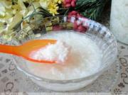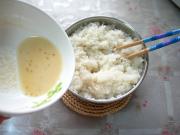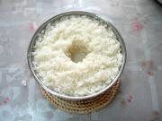 再在饭的中央挖一个圆孔。(做500克糯米或大米,大约需要配200ml凉开水,但是糯米饭放凉后太硬,可适当多放点凉开水;若是太软,可以少放点凉开水;酒曲的分量可以按照您购买的酒曲包装上的说明配置)