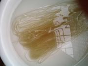 改小火加入粉丝翻炒,加盐、白糖、加少许水。