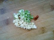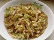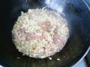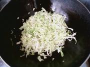 油烧热后先把辣椒炸香,再放葱蒜沫,加入圆白菜炒。