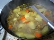 20分钟后改大火,下土豆和胡萝卜,烧开后继续小火。
