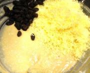 面粉 160g 硬质乳酪 120g 鸡蛋 1个 白脱牛奶 100ml(100ml牛奶加1茶匙柠檬汁至凝乳或100ml原味酸奶) 葡萄干 约30g 橄榄油 15ml 香草精 1茶匙 糖 60g 泡打粉 1茶匙 苏打粉 1/4茶匙 盐 1/8茶匙