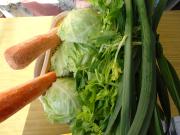 包菜、胡萝卜、青蒜、芹菜洗净晾干。
