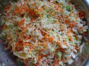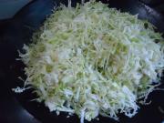 锅中倒入开水,放入包菜丝和胡萝卜丝氽一下。