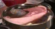 最好是选用带皮带骨的五花肋条肉,炖到汤里可以增加香味,没有也可以用五花肉代替,我就是用五花肉代替滴。然后把肉让清水里浸泡,要泡八个小时,也可以不用那么久,我泡了3个小时