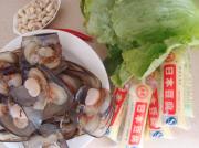 另起锅下水烧开,加入一茶匙盐和几滴油,然后放入生菜焯水10秒,立刻过冷河,沥干水份,其余的生菜过凉开水,沥干水份待用。