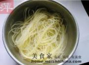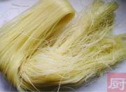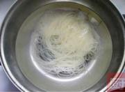另取一锅,加入清水,煮开,下入泡发的米线烫熟。