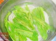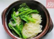 将米线和油麦菜捞出沥水后放入砂锅内。
