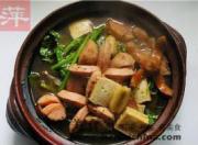 汤汁沸腾时,下入切好的烤肠、脆皮肠和丸子下锅煮。