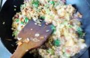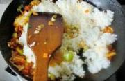 加入米饭炒散,炒到米饭颜色均匀出香。