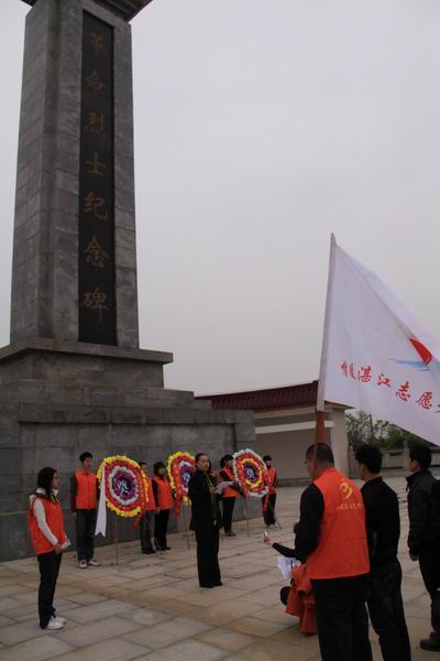 湛江市民政局副局长、湛江市双拥办专职副主任李兵凤向志愿者讲述了先烈们的丰功伟绩。情暖湛江志愿者服务队副队长柯韶钧代表志愿者向先烈们表达了敬意,并引领志愿者向先烈们立下“忠于祖国,服务社会”的宣言。