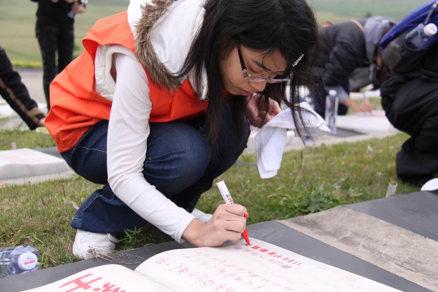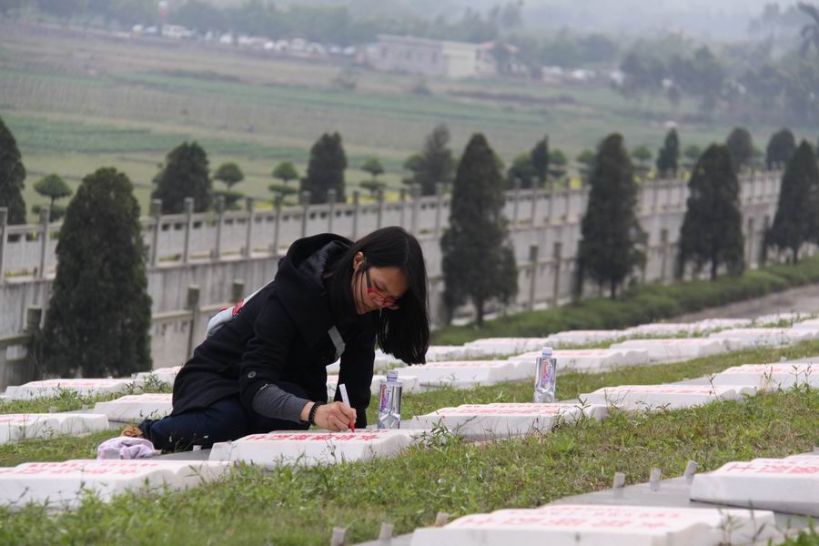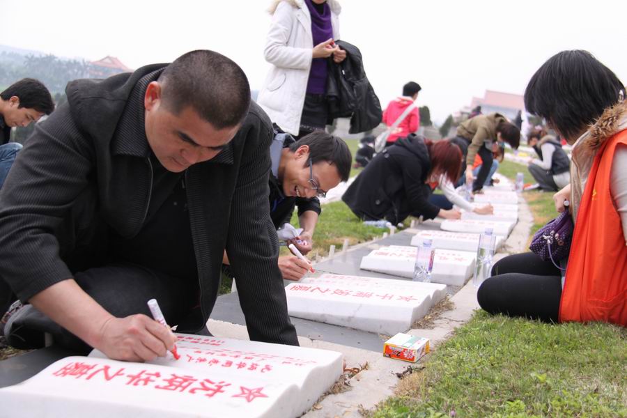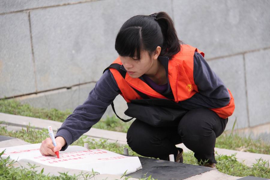 3月26日,我们100多名志愿者,怀着无比崇敬的心情,来到狮子岭烈士陵园,深切缅怀革命先烈们的丰功伟绩,表达我们的思念之情,告慰他们的在天之灵,并为他们的墓碑描摹。