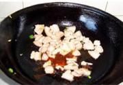 锅中放油烧热,下葱、姜末炒香,再放入五花肉。