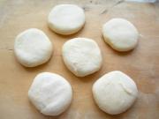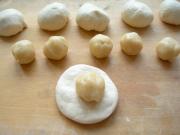 醒好的面团也分成6份,擀成面皮,一张包上一份酥皮面团。