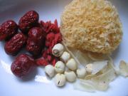 银耳,百合干,红枣,莲子和枸杞洗净泡发。