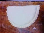 蒸大包时的发面取120g,擀成椭圆形薄饼。