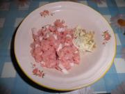 把五花肉切成肉丁,因为没五花肉了,改用别的了,最好带点肥肉,炒出来比较香。我习惯做肉菜的时候在肉上撒些干淀粉,好处就是炒出来肉嫩,不吸油。坏处就是容易丁锅。切好葱姜酸沫备用。