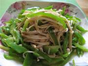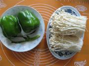 青椒洗净去蒂切段,金针菇洗净切根。