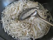趁热将油淋在金针菇上。