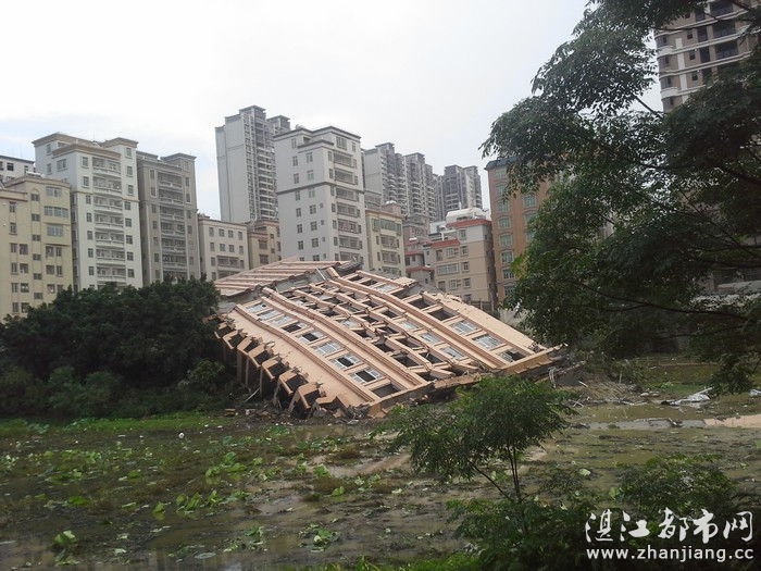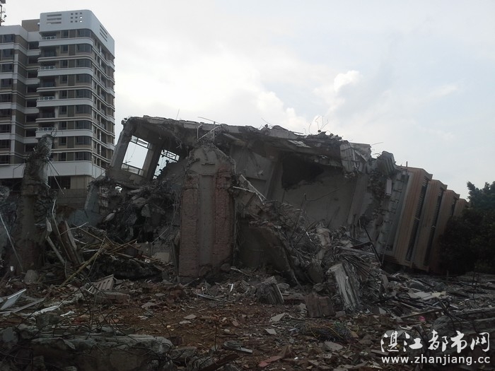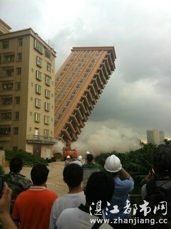 听现在的群众介绍,大楼就是用钩机等从一、二楼开始拆的,然后设定往菉塘公园方向倒