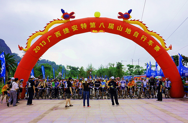 广西捷安特第八届山地自行车比赛5月26日上午在玉林市龟山湿地公园举行,广西11个地级市近400名山地自行车爱好者参加,届时车手将在比赛中一展身手.喜爱山地车运动的朋友也可以到比赛现场一饱眼福。