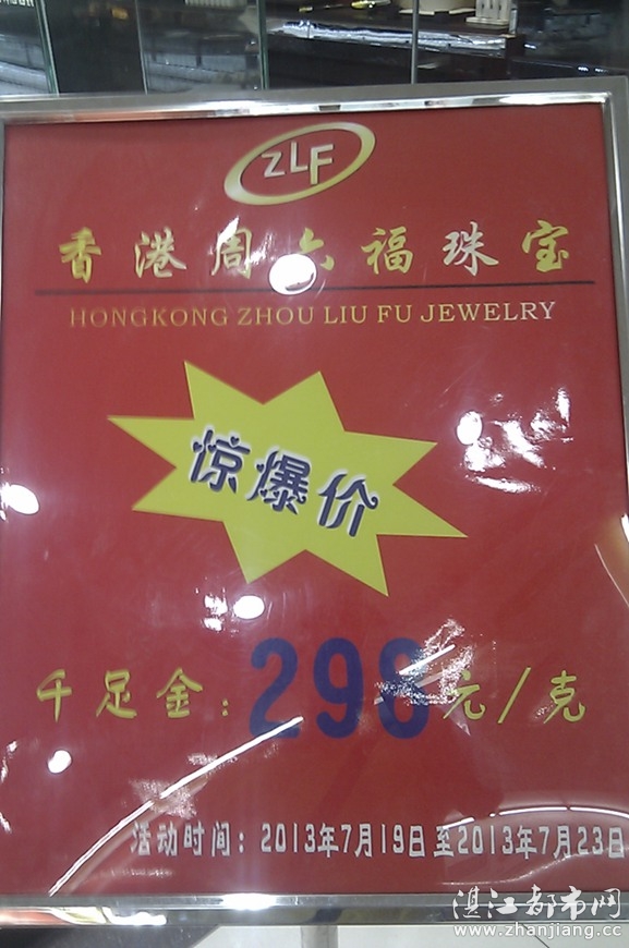 霞山昌大昌一楼的香港周六福黄金特价298元/克,跌破300元啦!