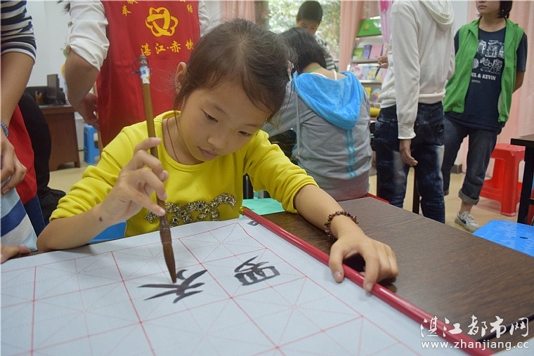 紧接着“周末大本营”第一次活动,29日,第二次活动在学生们和社工们相互有了了解的情况下顺利开展。这周也特别开设了“书法基础”实践课,学生们岭师书法协会志愿者的教导下,开始慢慢的认识毛笔字。