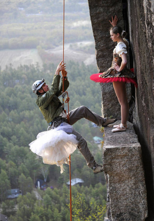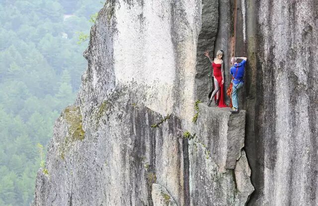 不只是新人才能来拍摄,杰为一切想体验峭壁生活的人提供拍摄服务。他的客户里,有模特,有选美皇后,还有舞者。他们都在寻求一次“相片世界里的冒险”。