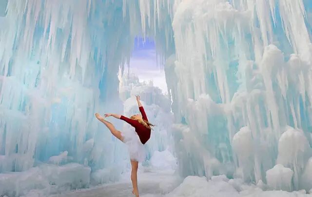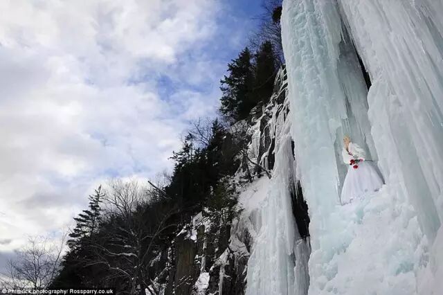 还有位新娘订制了“冰雪奇缘”的主题,来看看她在峭壁冰窟上的造型。