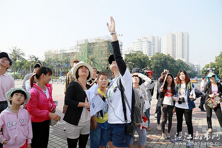 湛江都市网讯(图/文:燕燕于飞)2013年10月25日上午8时45分,由湛江往事书吧组织的第3期秋游活动在霞山区海滨公园时代广场前集合。由于前2期秋游活动的成功举办,这期参加活动的团友达200多人,由春哥、阿达、瑶瑶、许老师和小儒带领着团友们,分5批游览霞山区老街和历史建筑。导赏队伍从海滨公园出发,途经海滨大道南、绿荫路、逸仙路、爱国路和东堤路等路段。在一众导赏员和副导赏员的解说和图片展示下,了解和认识西营邮电局、法国公使署、法国广州湾警察署,维多尔天主教堂、南天大酒店旧址、可口面店、人民公社、水产公司和八角市场等等历史建筑的人文气息、建筑风格和历史故事。