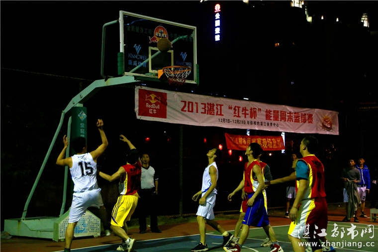 2013年12月7-29日每个周六日的晚上,由湛江市体育局主办,湛江市社会体育与竞赛管理中心、湛江市篮球协会承办,湛江都市网网络协办,北京红牛饮料销售有限公司湛江分公司冠名赞助,湛江市百川文化传播有限公司执行的2013年湛江市“红牛杯”能量周末篮球赛都在湛江市体育中心露天篮球场准时开战。这是湛江市篮球爱好者乃至湛江热爱运动的广大市民的一大盛事,也是这个寒冷的冬月里围绕在广大体育爱好者之间的一股激情红火的温暖!