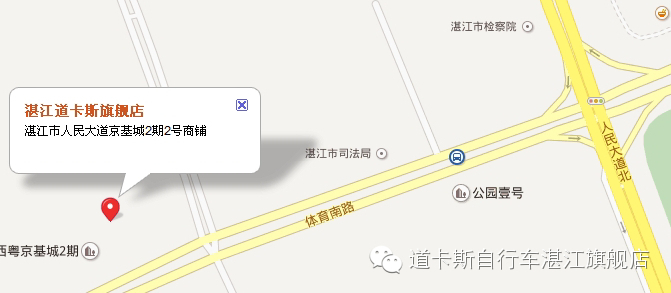 位于湛江市人民大道京基城二期道卡斯湛江旗舰店以服务广大骑友为宗旨,以优雅,舒适的环境为广大骑友打造集休闲,健身,娱乐为一体的最绿色环保的平台。“追求健康,快乐骑行,低碳环保,享受骓驰”是我们的理念 微信关注我们: 1.微信通讯录右上角“+”号→搜号码输入“道卡斯湛江”搜索 3.扫一下下方的二维码