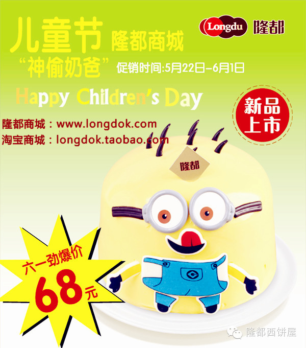 欢乐儿童节(神偷奶爸)小黄人蛋糕8寸 隆都亲子价:68元