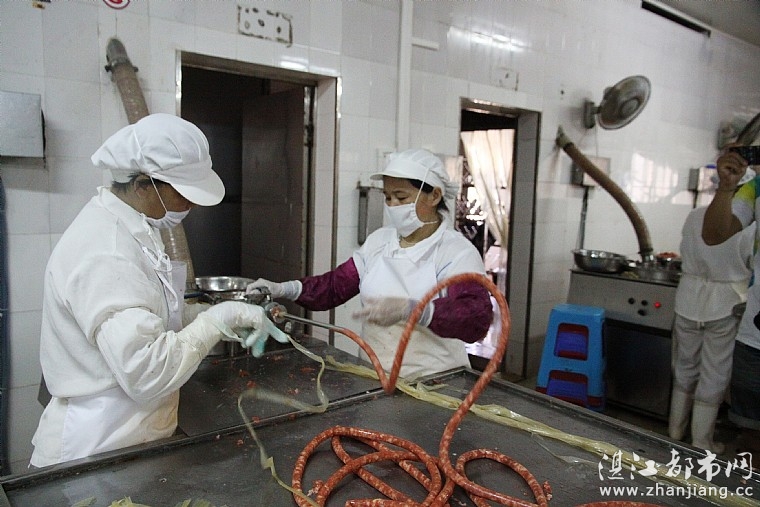 第四站:金泉腊味 作为吃货一枚,吃过腊味,但并不知道腊味是如何制作出来的。金泉腊味是当地一家老字号,传承了老祖宗的秘方与传统工艺,但加上现代化的生产模式,让他们的产品成为了湛江一个响当当的大品牌。 李泉总经理见到我们时,热情的介绍了金泉腊味食品厂的概况。中秋佳节的临近,意味着腊味食品进入了生产与销售的旺季。工人们日以继夜的加班,以满足一批又一批的市场订单。就在我们参观的半个月前,上百名大妈组成的疯狂采购团,买走了一大批金泉腊味产品。百闻不如一见,我们都决定亲自去生产车间以及生晒场参观。