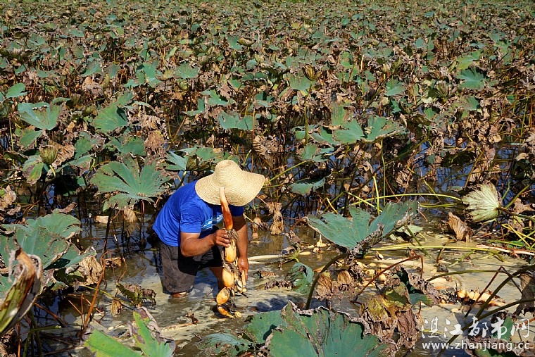 摘莲藕用高压水泵一冲,莲藕轻易就可采摘出来