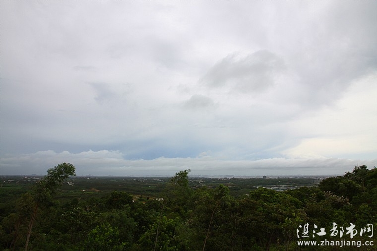 适逢下雨,笔架岭最高处看不清湛江市区全貌