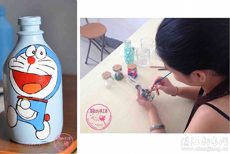 沫沫DIY手工制品之玻璃彩绘:在一个玻璃瓶上彩绘自己设计自己喜欢的风格图案。