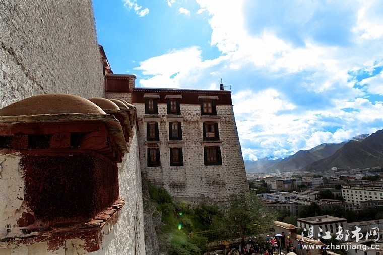 依山垒砌的布达拉宫,群楼重叠,殿宇嵯峨,气势雄伟,有横空出世,气贯苍穹之势,坚实墩厚的花岗石墙体,松茸平展的白玛草墙领,金碧辉煌的金顶,具有强烈装饰效果的巨大鎏金宝瓶、幢和经幡,交相映辉,红、白、黄三种色彩的鲜明对比,分部合筑、层层套接的建筑型体,都体现了藏族古建筑迷人的特色。布达拉宫是藏式建筑的杰出代表,也是中华民族古建筑的精华之作。