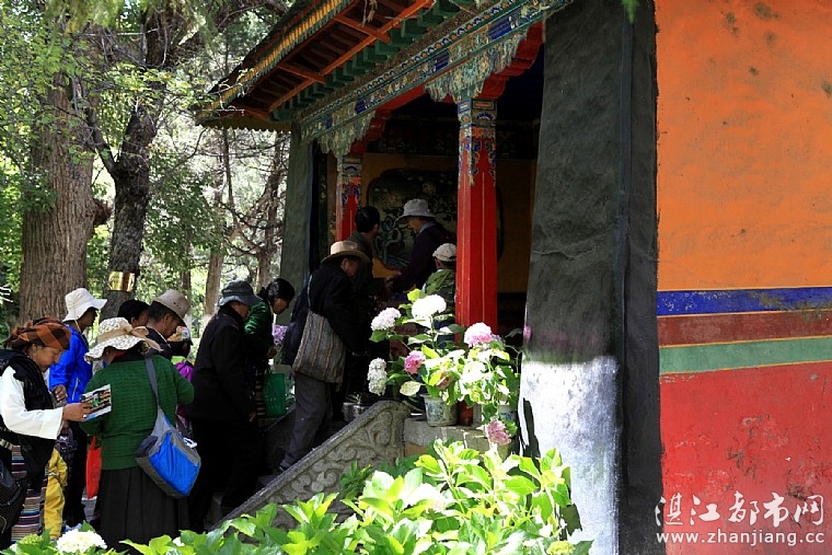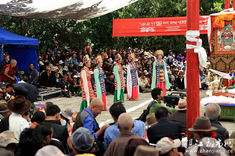 戏台上,从早到晚都在演出藏戏,四周藏胞将戏台包围得水泄不通。藏戏是雪顿节中的一项重要表演节目,是藏胞们的最爱。