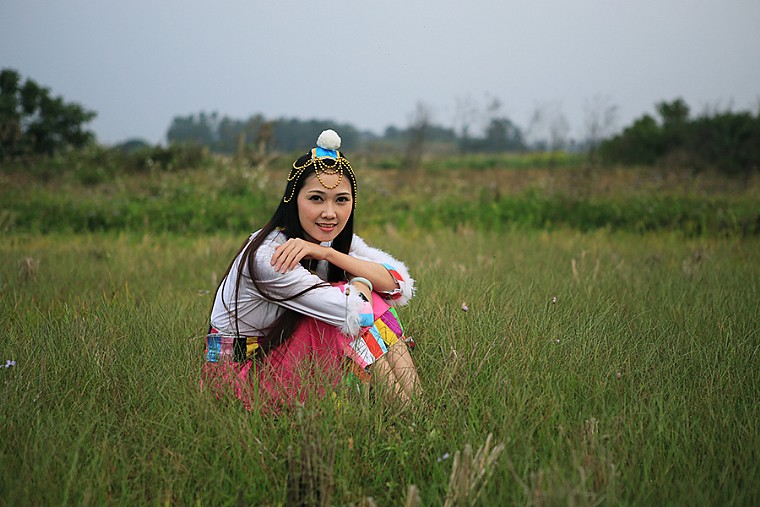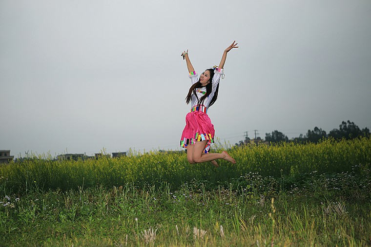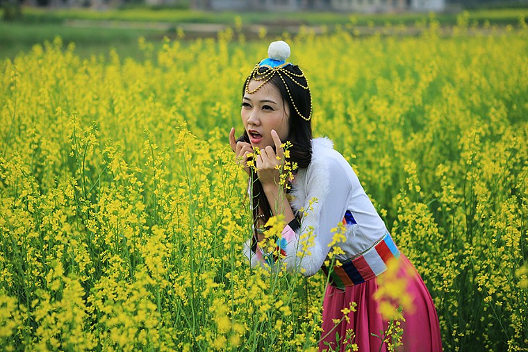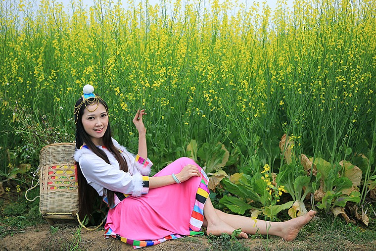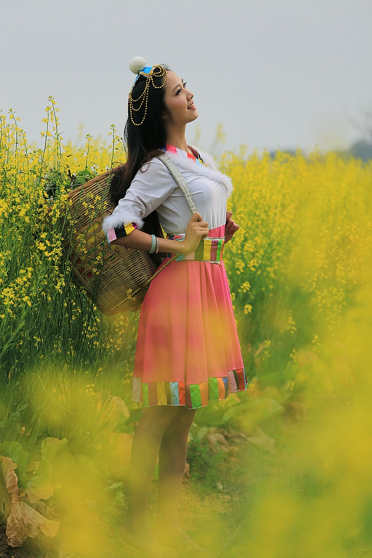 赏菜花的少女