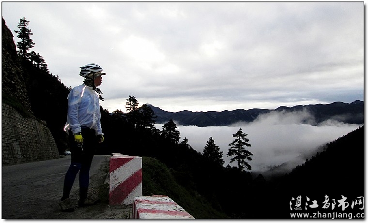 推过事故车辆骑过转弯处回头看了看,队友这时也刚好骑到车辆前后,哦他们也跟上来了,还好,25公里的连续爬坡我已经骑出来一半,这样就算拖后腿也不至于太远。路标4176的位置,是观赏南迦巴瓦峰的最佳位置,观光的汽车也是闻峰而来这里也聚集了不少游客,此时上午10点多,浓雾已经覆盖了整个大峡谷,对面很近的山峰都看不见,看来我们无缘面见羞女了,休息几分钟喝口水再接再厉,距垭口还剩下4公里左右的时候,体能尚存的我却没有办法控制自己越来越快的心跳频率,不得不推行了一段,11点刚过,还是“顽强的”骑到了垭口,看看石碑上刻着“色季拉山口,海拔4720米”,怎么和路书上写4559米不一样?总之这是俺第二次骑到山顶算是不小的成功吧,给自己点赞一下。