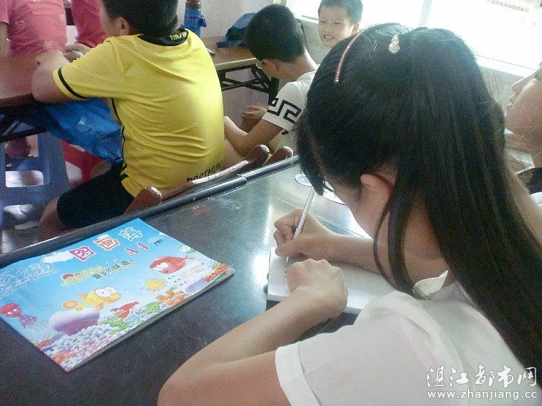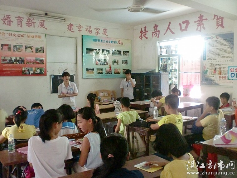 翼梦•坡头社会实践队湛江7月19日电(通讯员 吴徽煜)7月18日早上10时10分,岭南师范学院翼梦·坡头社会实践队支教组何静微老师在坡头镇塘博村村委会办公楼二楼教室开始了她的今天的趣味英语课。为了能提高孩子们对英语学习的热爱,何静微老师挑选了一些日常实用的英语词汇和问候语,让孩子们在日常使用中产生对英语的热爱。