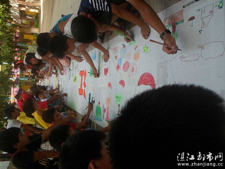 在活动过程中,各班共同描绘自己心中的梦想和期许,不仅画出了他们的憧憬和希望,他们还绘画了蓝天、白云,还有彩虹和鱼类,切合蓝色湛江的主题,此外还有许多的同学绘画了竹子代表了当地的特色,五六年级的同学更是充分发挥了自己的绘画天赋,将自己脑海里的梦想蓝图用画笔展现得淋漓尽致!