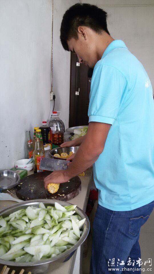 今天早上我们在最美男主厨的英明领导下,我们不仅准时煲出了可口的白粥,还煮出美味的菜。虽然中午的的菜很清淡,但在男主厨的努力下也变成了美味佳肴。