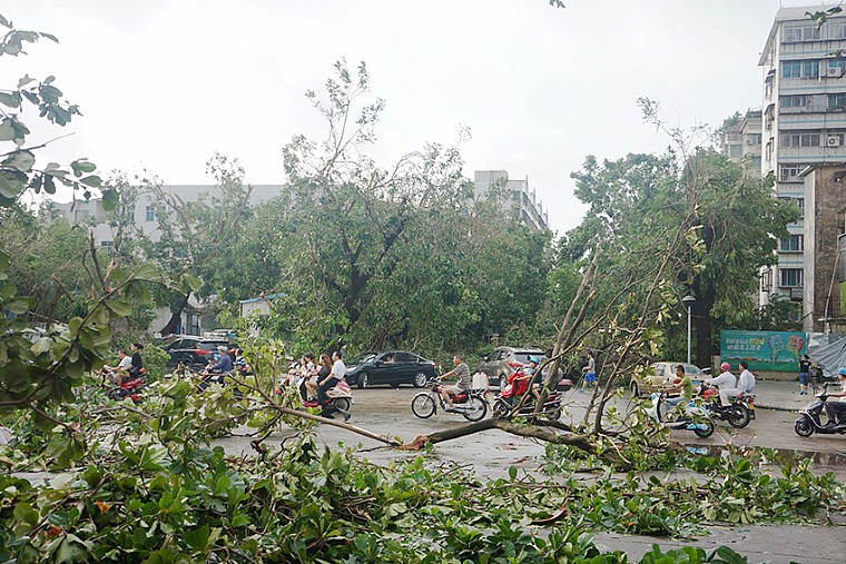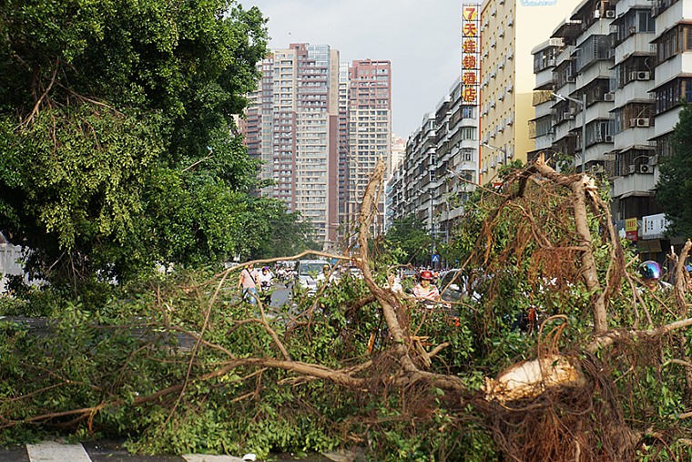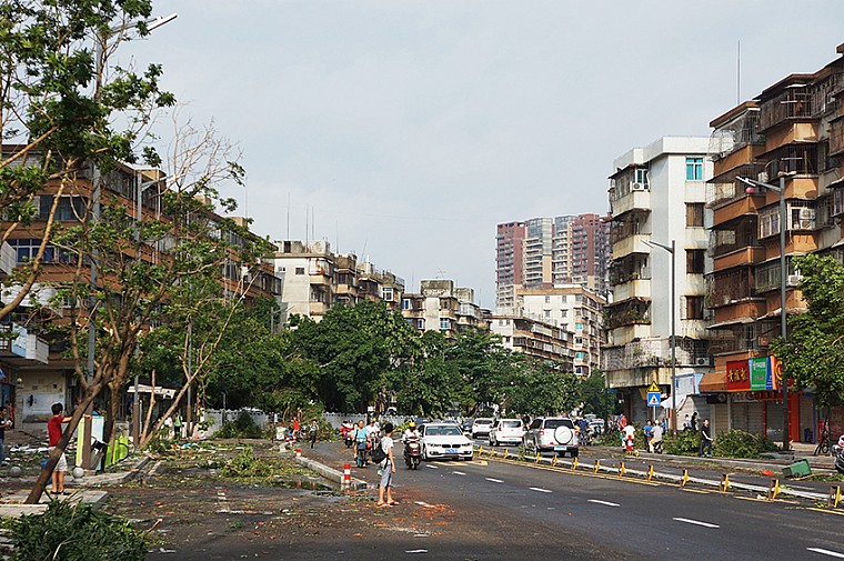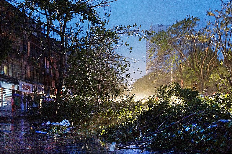 下午18时许,全城漆黑,狂风怒号,暴雨余威。作为摄影者,这是一次追风的机遇,于是打把雨伞,手持相机.冒险而行,面对全城满目疮痍的景象,连扫几条街。(注:扫街抓拍--霞山区,新园路、文明东路、海滨大道、绿村路)