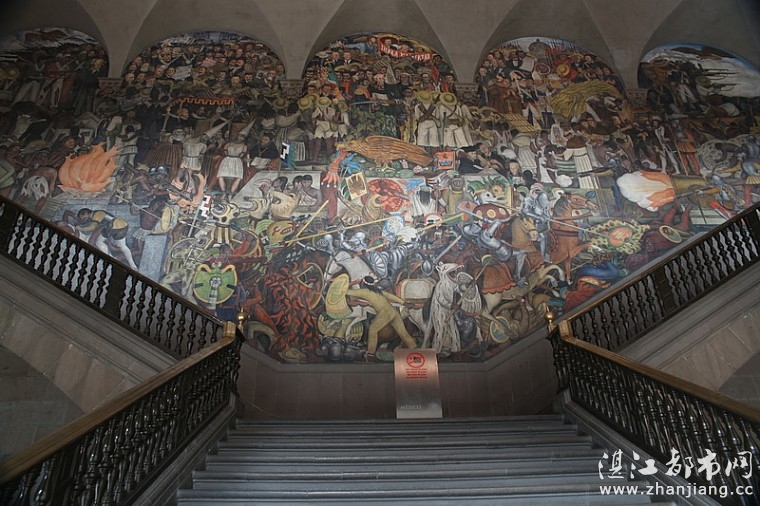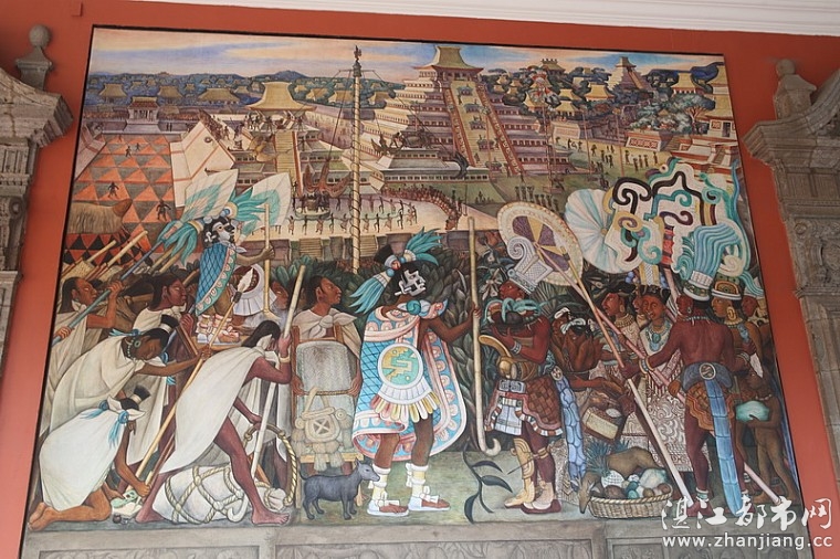 这里收藏有墨西哥著名画家里维拉的巨幅壁画