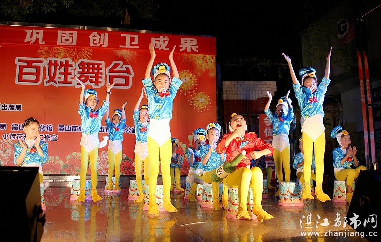 湛江都市网讯(图/文:燕燕于飞):2017年7月1日,“七一”中国共产党建党和香港特别行政区成立纪念日, 由湛江市文化广电新闻出版局主办,湛江市文化馆承办,霞山区文化新闻出版局、霞山区文化馆和霞山商业步行街管理办公室协办,湛江市艺术活动中心与小荷花艺术工作室演出的“荷花朵朵,采摘阳光”开心广场少儿舞蹈专场晚会,于霞山民享路商业步行街开心广场舞台欢乐上演。湛江市正在全力创建全国文明城市,巩固创卫成果,晚会结合当前的创文巩卫主题,以舞蹈的表演形式,为湛江市民献上一台精彩纷呈的专场晚会。