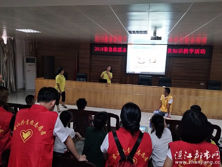 意外往往发生在生活的许多小场景里,面对那些突发急、危、重症或意外伤害事故需要急救的人来说,时间就是生命。最佳救援时间就是他们生和死的分水岭。为了让村民遇到意外时得到专业的急救救助,为了提高村民急救技能和方法,湛江市情暖湛江志愿者协会公益讲师团(梁姐、活宝、年年、文杰,低调等)于2018年8月15日17:00-17:30在霞山新村村委开展急救医疗志愿服务进社区活动,为新村50名村民群众进行心肺复苏知识宣传。